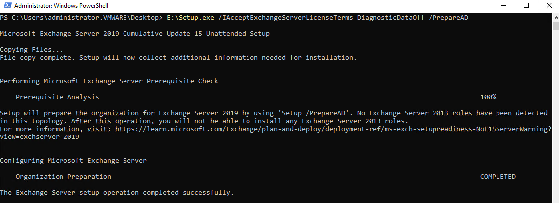 Exchange kurulumunu yeniden başlattığınızda sorunsuz bir şekilde devam edecektir.
