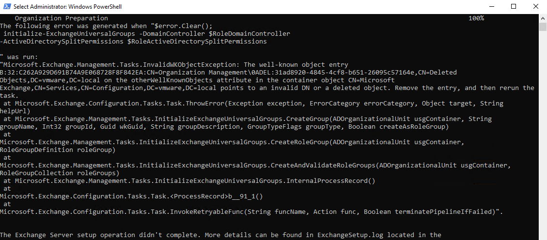run: “Microsoft.Exchange.Management.Tasks.InvalidWKObjectException: The