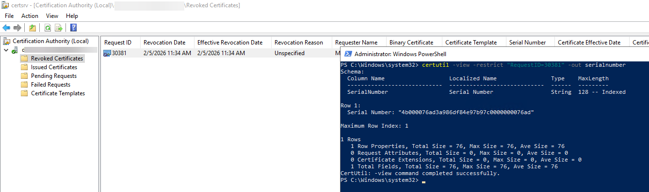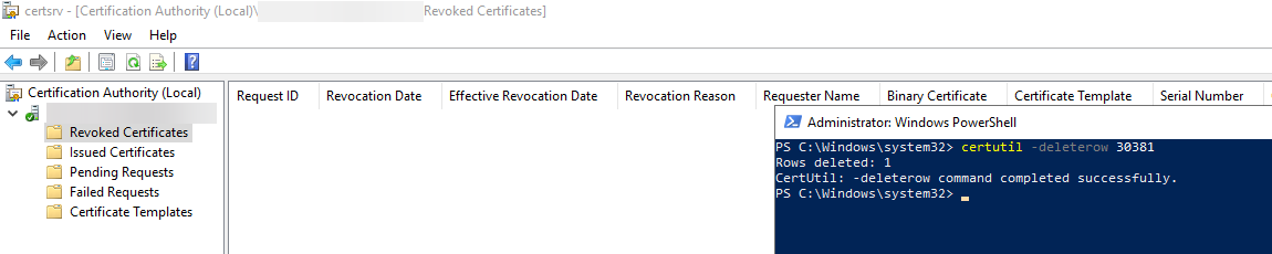 certutil -deleterow 30381