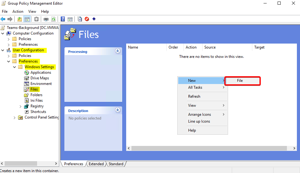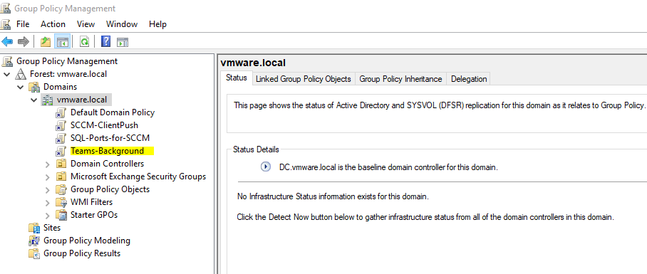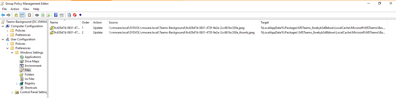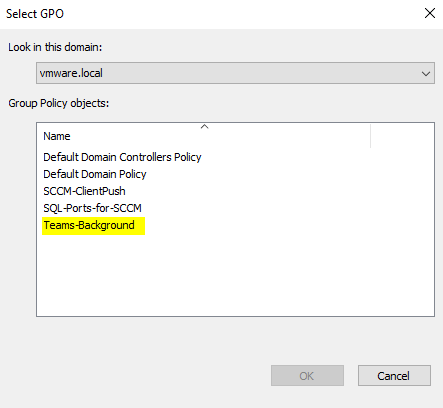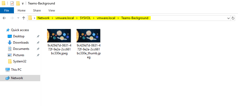 Copy the image and thumbnail files to a folder on your Domain Controller that is accessible for GPO deployment. I chose \\domain.local\SYSVOL\domain.local\Teams-Background