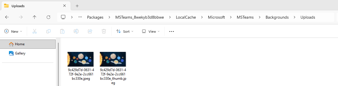 Finally, open Windows Explorer and go to: %localappdata%\Packages\MSTeams_8wekyb3d8bbwe\LocalCache\Microsoft\MSTeams\Backgrounds\Uploads