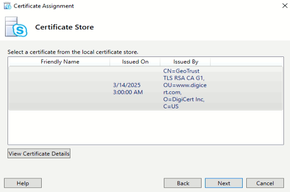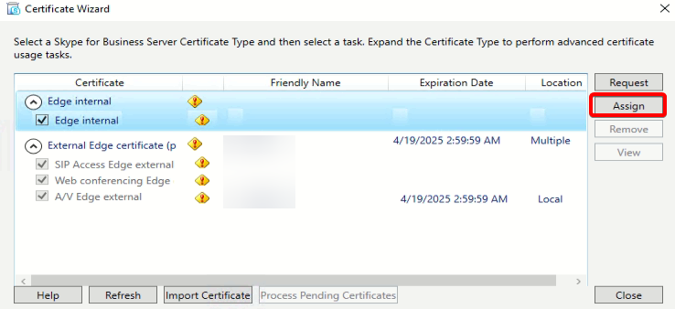 Certificate Wizard kısmından Assign’a tıklayın.