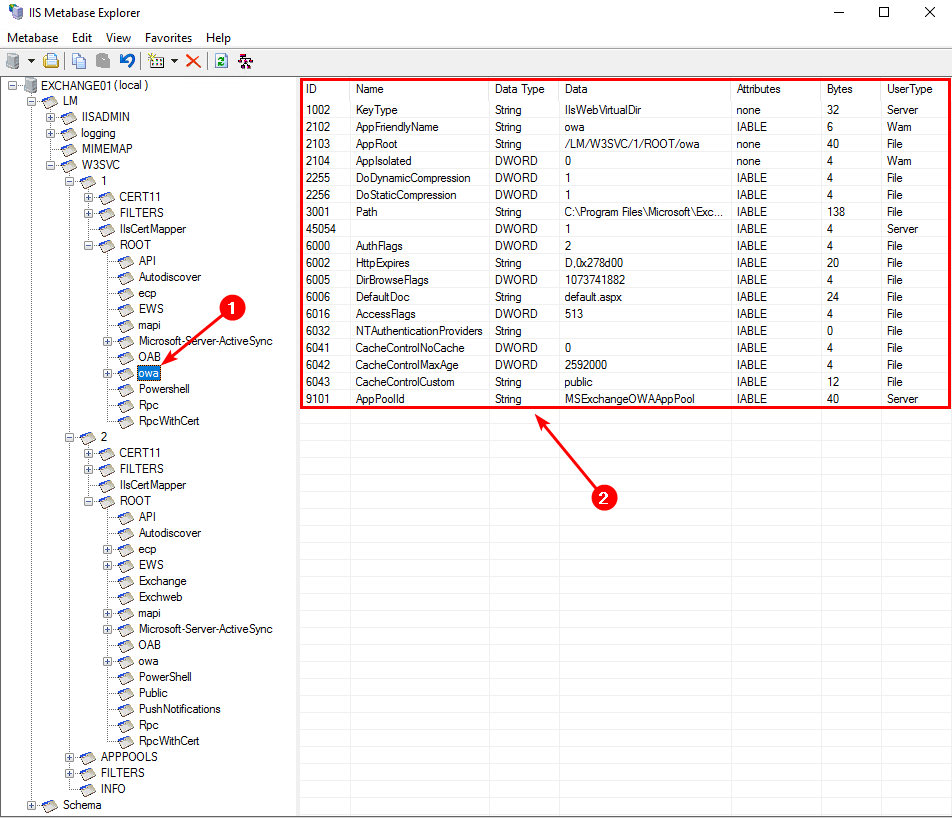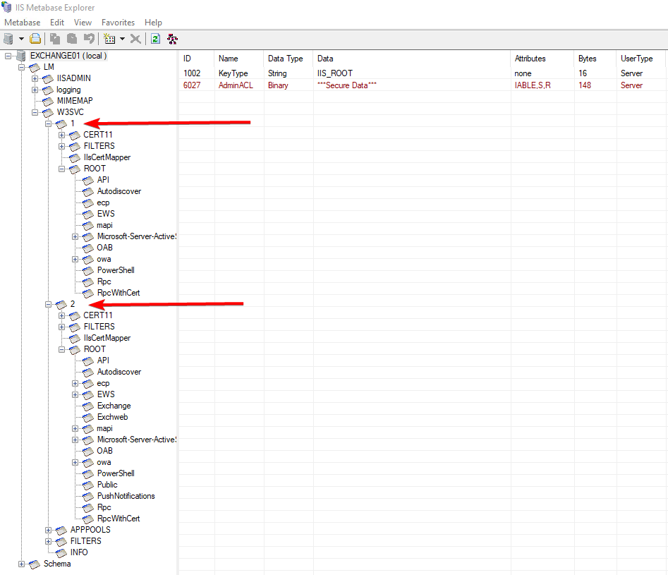 Validation: Ensure the data is present and recreated in IIS Metabase Explorer.