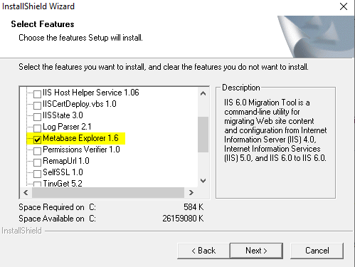 Download the IIS 6 Resource Kit from [Microsoft] or via this link. Once downloaded, proceed to install Microsoft Metabase Explorer 1.6 on the Exchange Server.