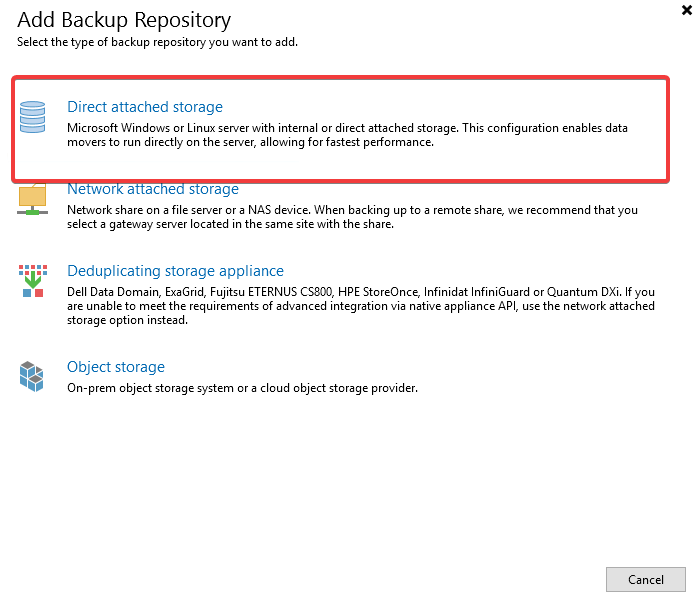 Backup Infrastructure>Backup Repository>Add backup repository seçeneğine tıklayın.