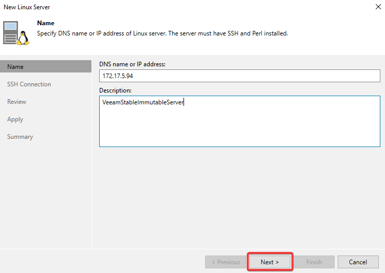 Immutable hardened repository veeam makineninizin IP’sini girin.