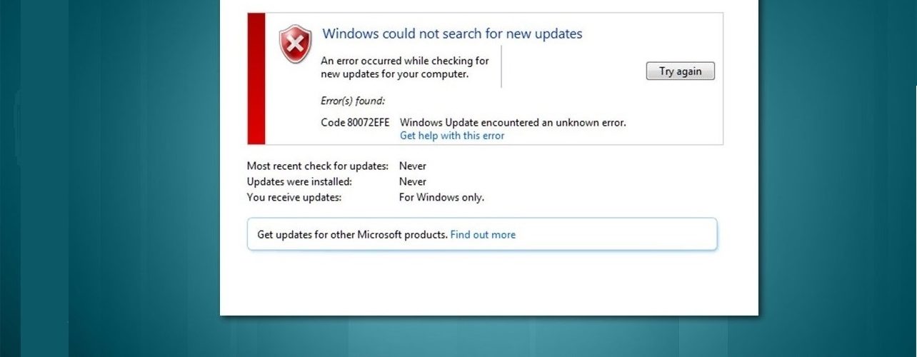 Genellikle yeni bir makineye ilk defa Windows7 kurduğumuzda ve Windows7 makineye format attığımızda karşımıza çıkan en ünlü sorunlardan biri işletim sisteminin update almamasıdır. Update almayan işletim sisteminde hata kodu olarak karşımıza çoğunlukla 80072EFE çıkmaktadır.